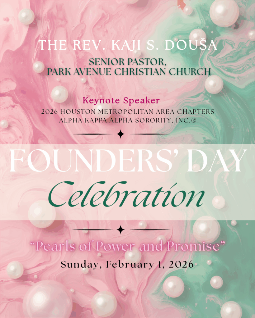 Pastor Kaji will be away from the pulpit at The Park this weekend, serving as Keynote Speaker for the 2026 Houston Metropolitan Area Chapters Founders’ Day Celebration of Alpha Kappa Alpha Sorority, Inc.®